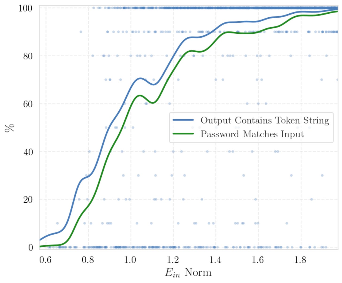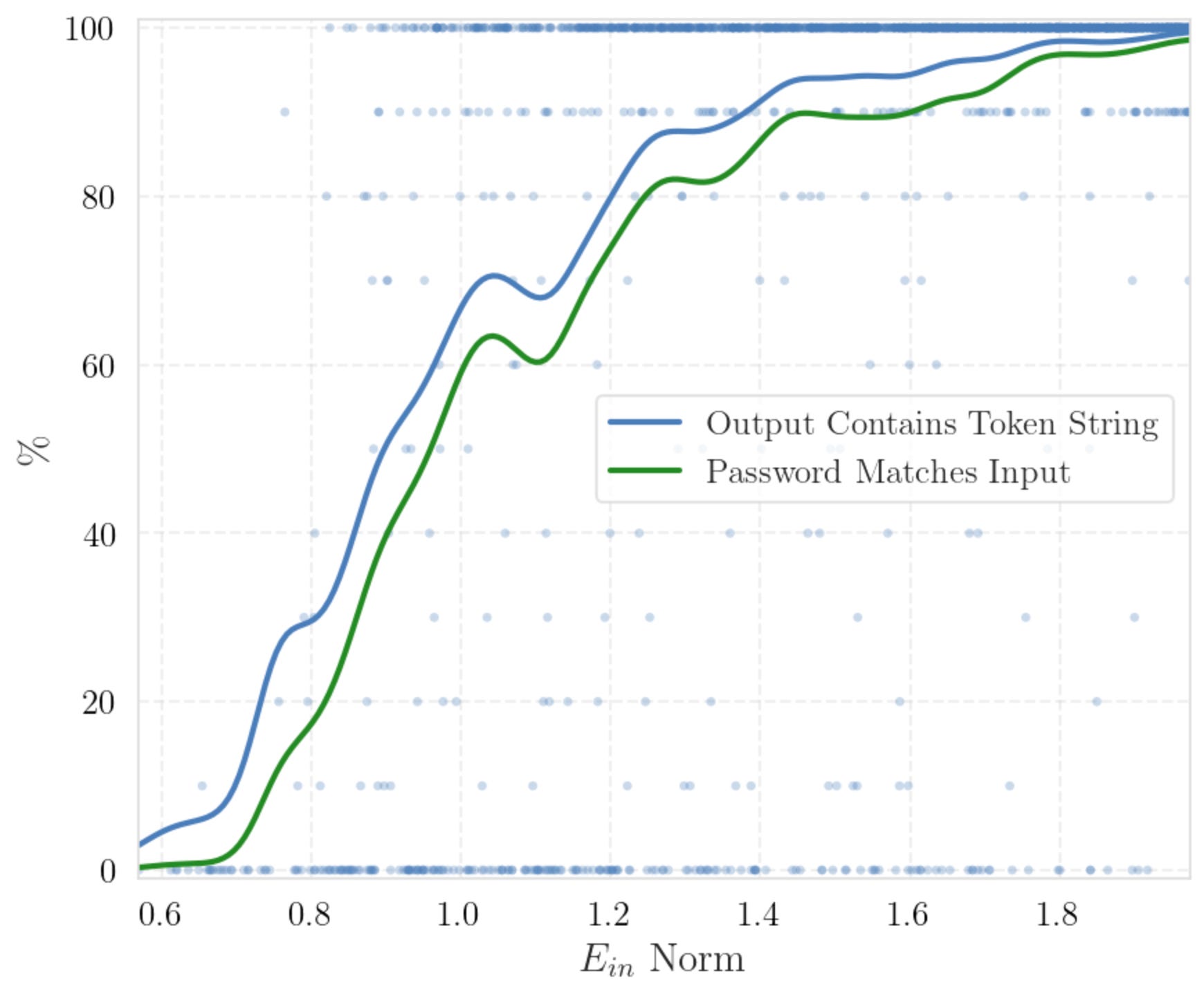 The verification results align well with the embedding-based predictor. Yet, even at relatively high values, some tokens fail this simple task—even when they correspond to perfectly reasonable words.